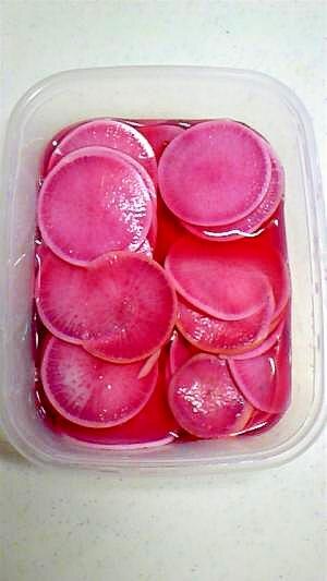 ピンクの大根の酢漬け レシピ 作り方 By Mocootti クックパッド 簡単おいしいみんなのレシピが359万品